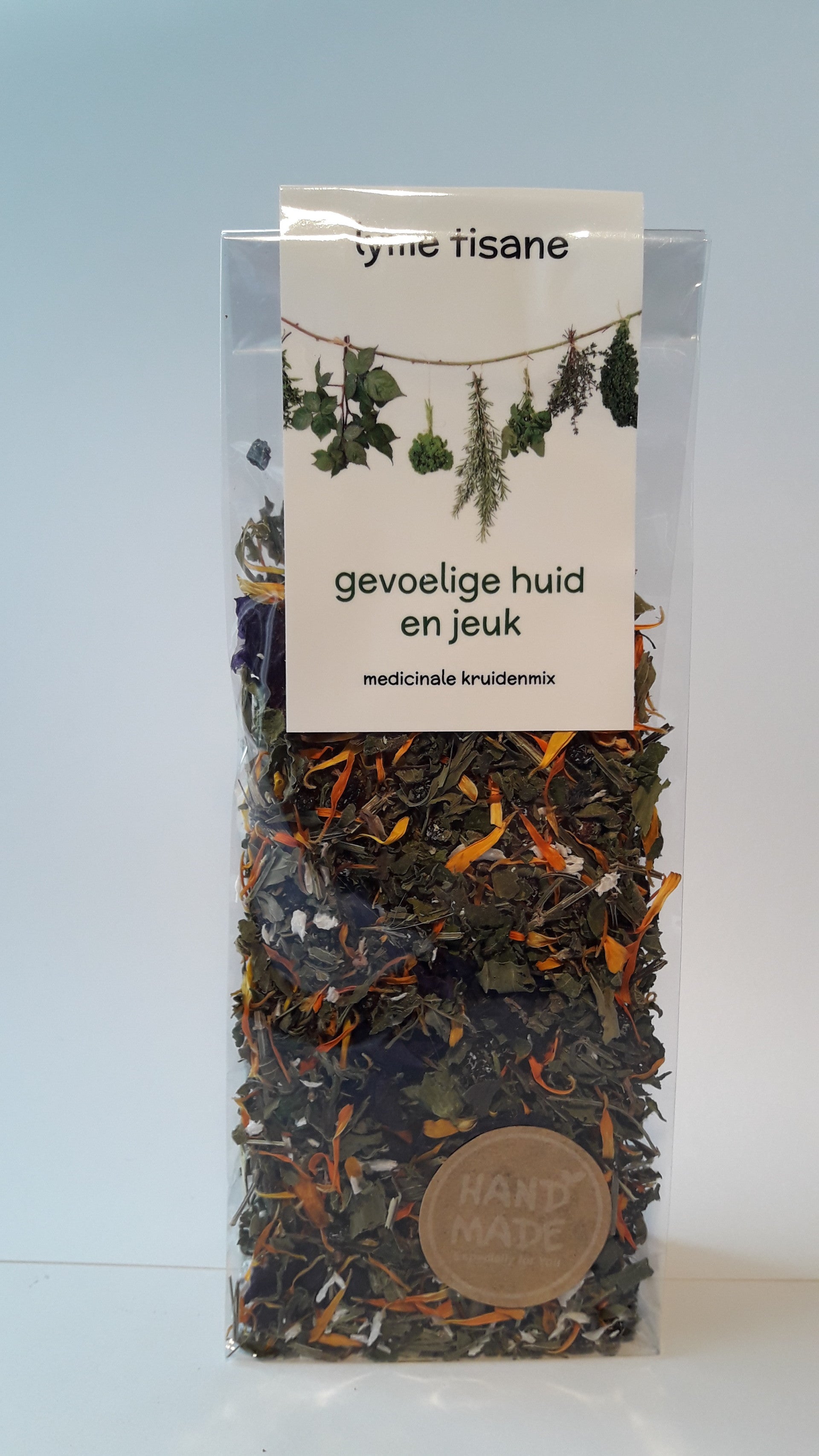 ingrediënten: kleefkruid, weegbree, goudsbloem, brandnetel, vlier, kokos en kaasjeskruid